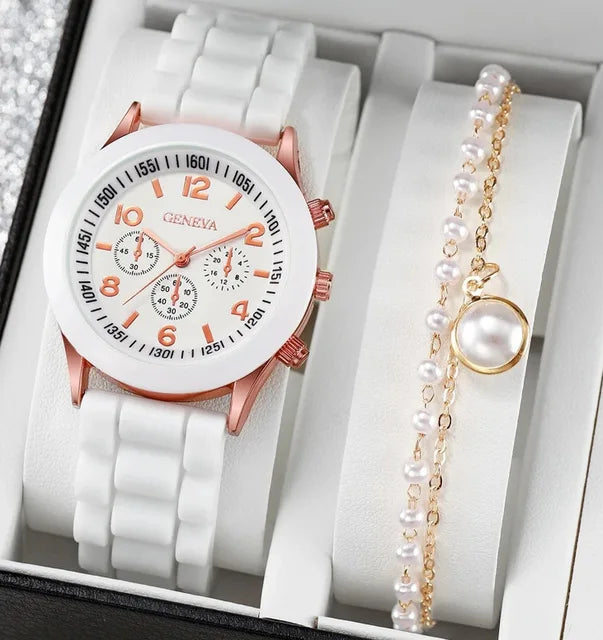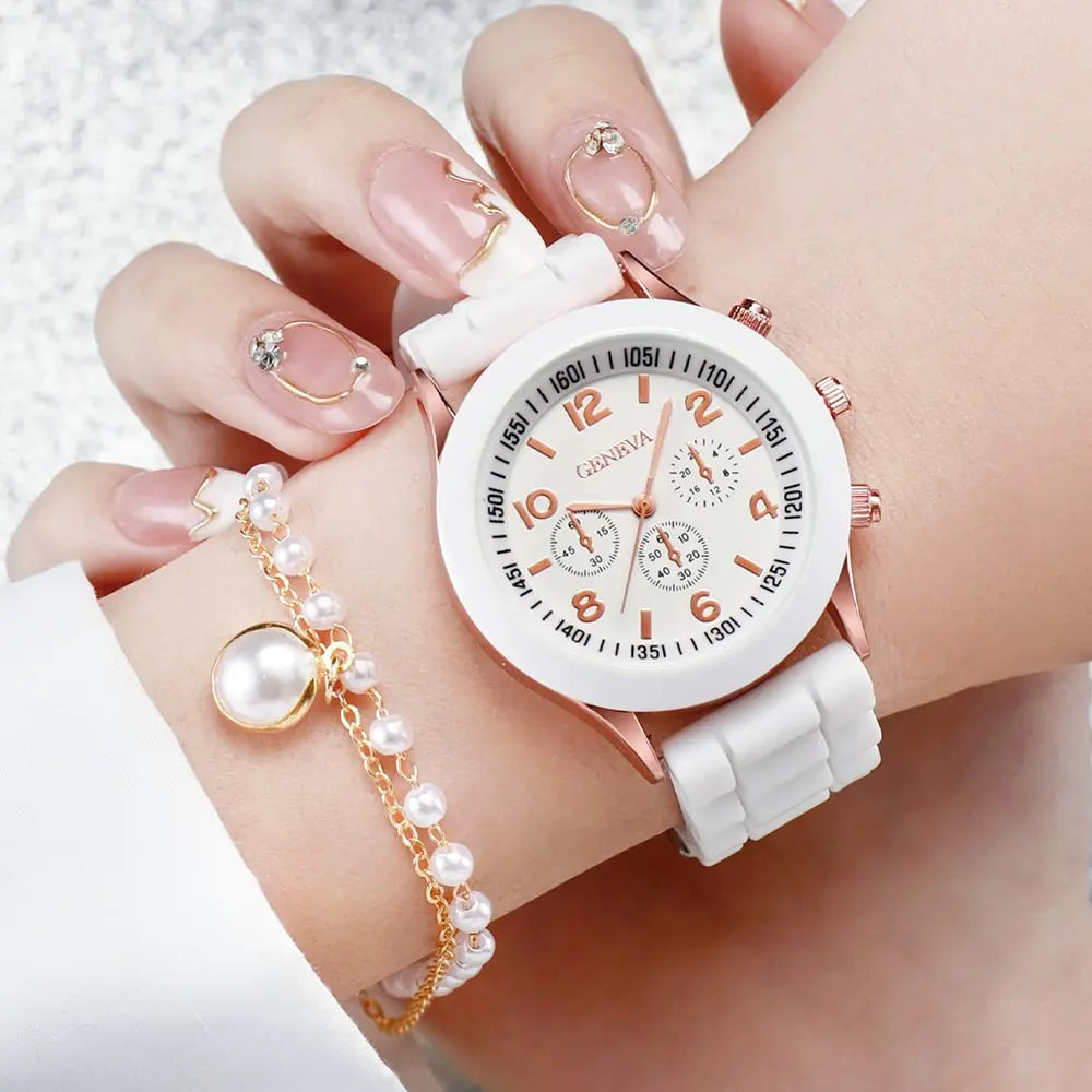 ✨ Complete 5 Luxury Jewelry Collection: Ladies' Rhinestone Watch, Necklace, Earrings, Ring, and Bracelet for Effortless Elegance! ✨