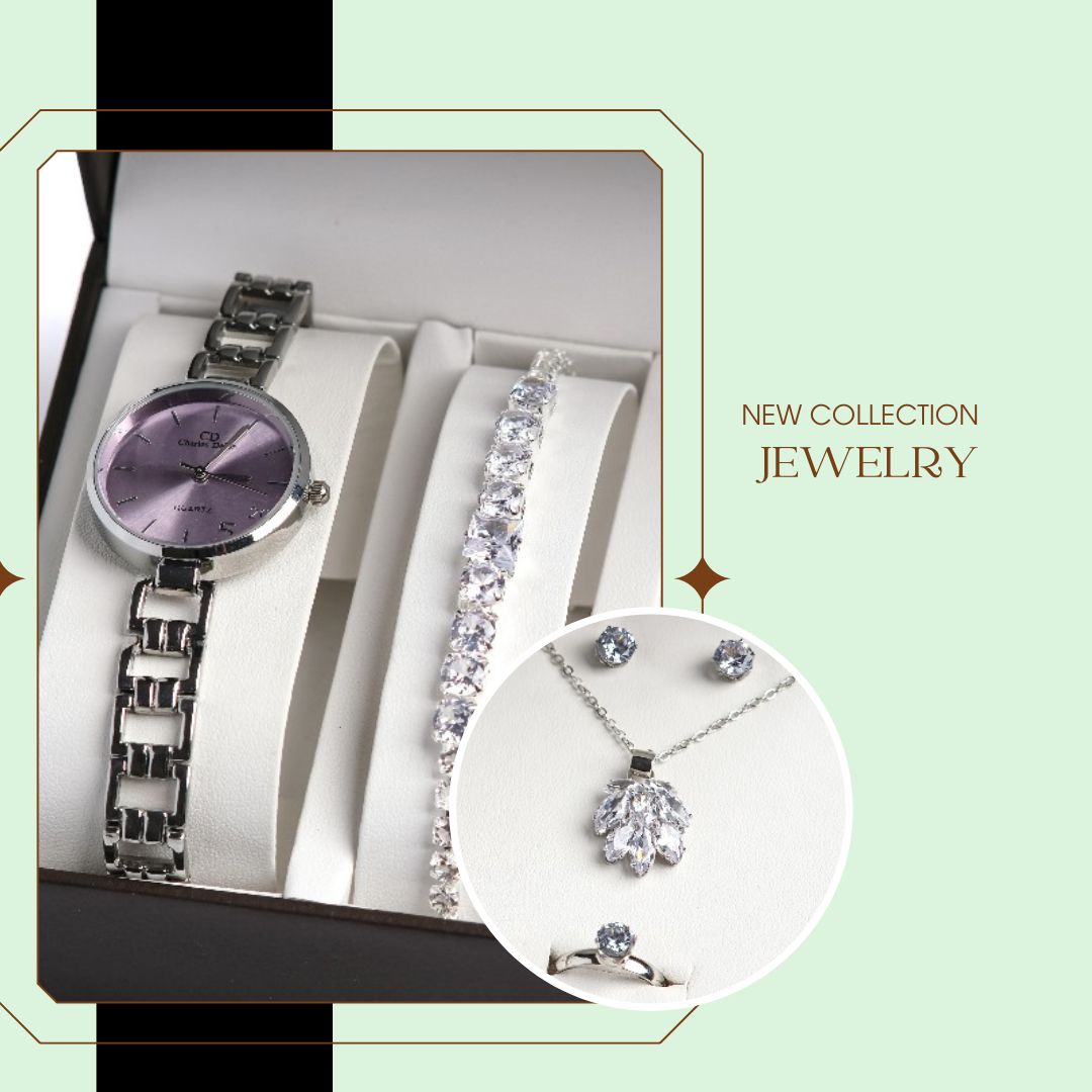 Shine brighter with our exquisite 6-piece silver jewelry set, designed to dazzle with every movement. โจ
