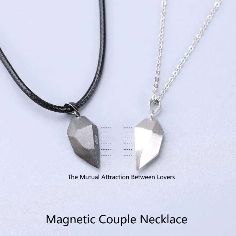 Are you and your significant other inseparable? Celebrate your unique bond with our Couple Magnetic Love Splicing Clavicle Chain Necklace, a symbol of your intertwined hearts and unbreakable connection. Crafted with exquisite detail, this pendant features two half hearts that magnetically unite, just like the magnetic attraction between you and your partner. Made from high-quality materials, this necklace is not only a beautiful accessory but also a heartfelt expression of your love.