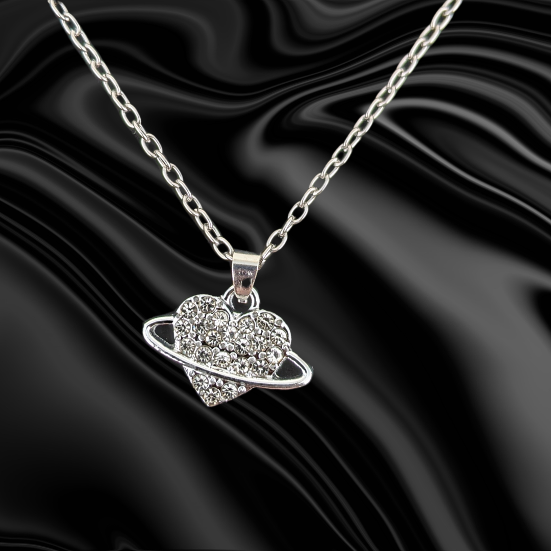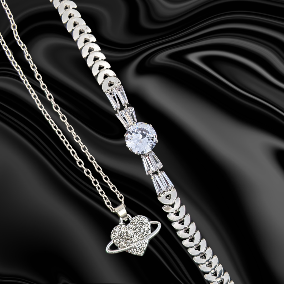 - Heart Necklace: A stunning centerpiece that embodies love and elegance. The heart-shaped pendant is adorned with sparkling rhinestones, making it a perfect symbol of affection and grace.