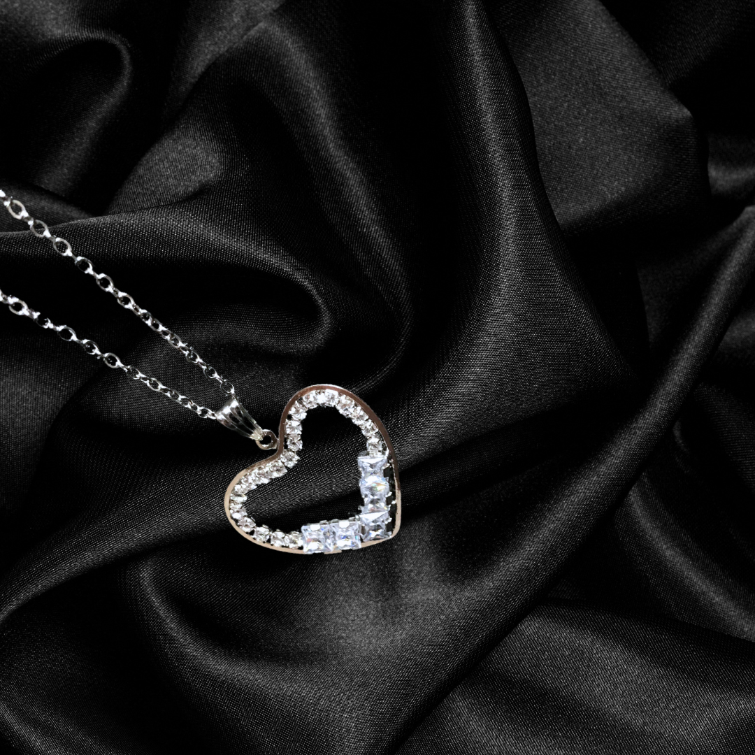 - Heart Necklace: A charming heart-shaped pendant adorned with rhinestones, symbolizing love and elegance.
